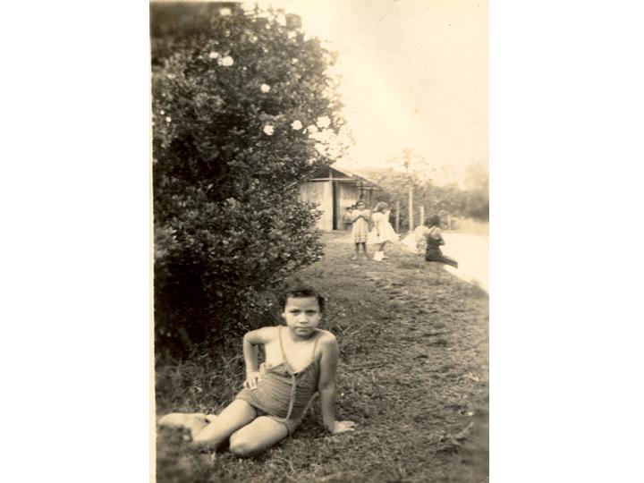 Paseo familiar que aprovecha María Nercy García para tomar el sol. Palmira, 1953