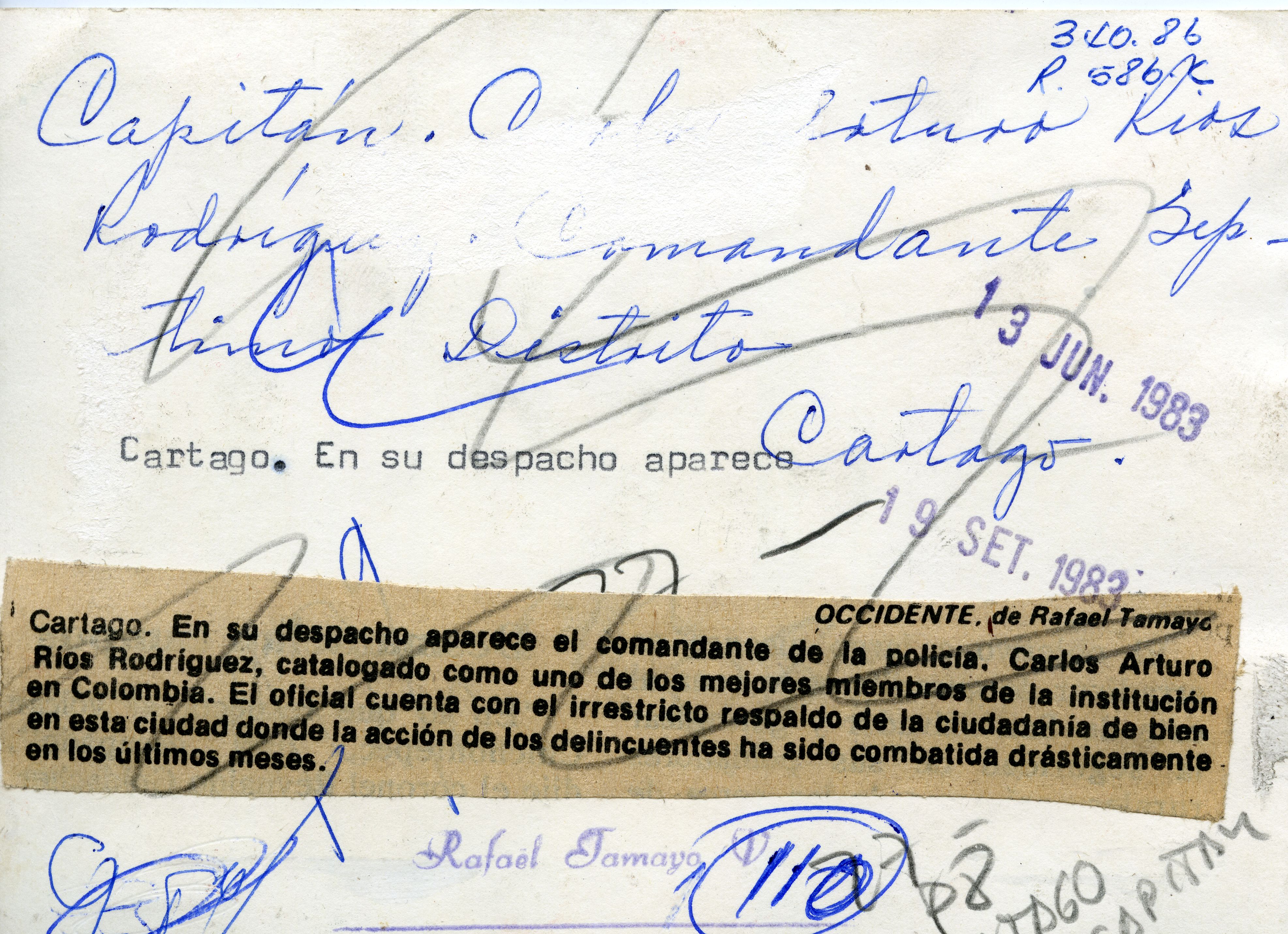 Capitán Carlos Arturo Ríos Rodríguez, Comandante Séptimo Distrito, en su despacho