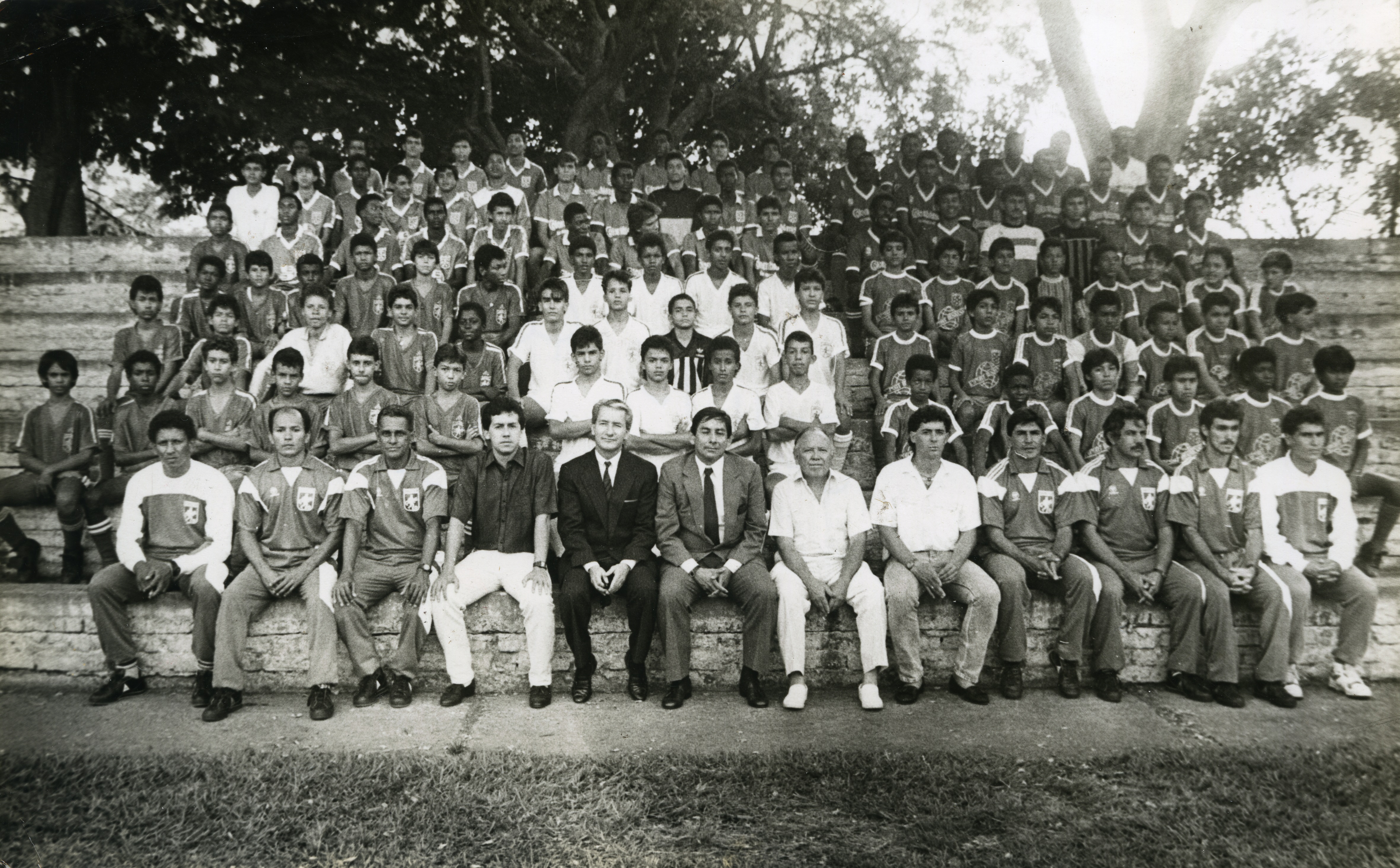 Integrantes equipo América de Cali. Se aprecia comité deportivo de la segunda división, inferiores, y el cuerpo técnico