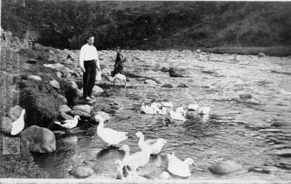 Pablo Emilio Sierra B. a orillas del río Cali en su propiedad Le Follie Bergere. Santiago de Cali, 1930.