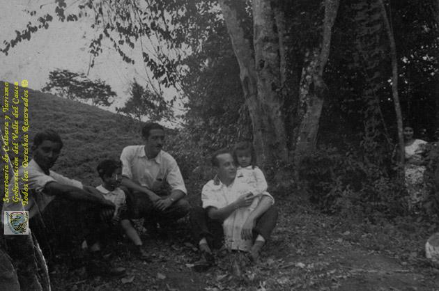 Paseo campestre entre amigos: Emiro Delgado, Germán Valencia, Felipe, José Joaquín y Socorro Victoria