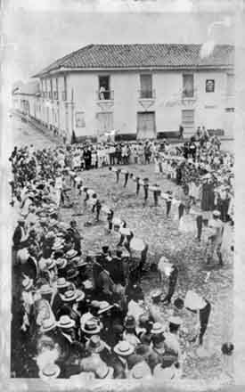Ejercicios militares frente al parque Bolívar. Palmira. C.1925.