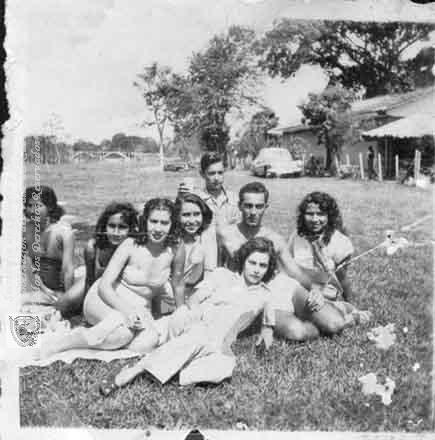 Lola y Maruja de paseo al río, con los amigos de la gallada. Santiago de Cali, C. 1960.