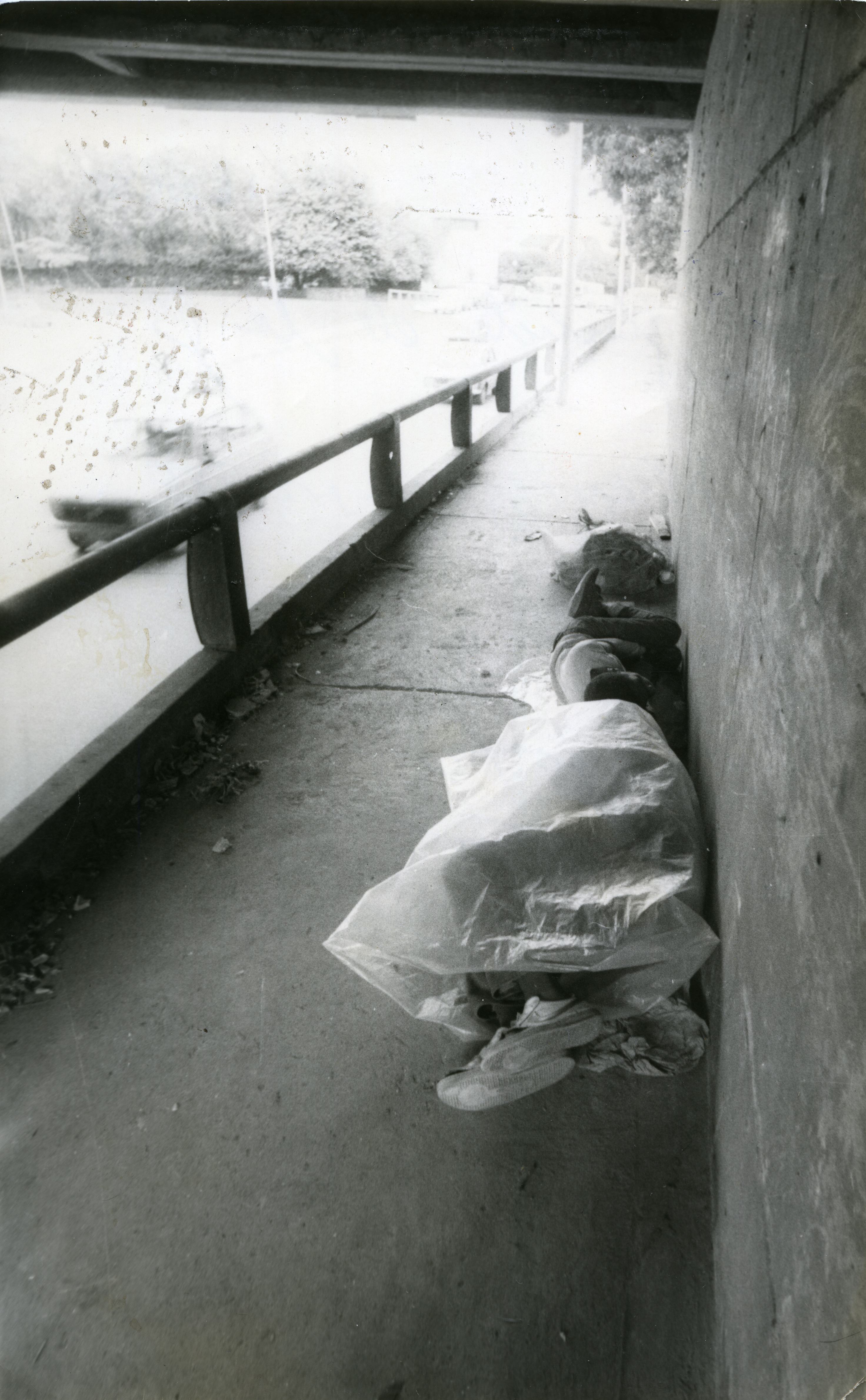 Foto de un indigente durmiendo debajo del puente de la 15 norte.