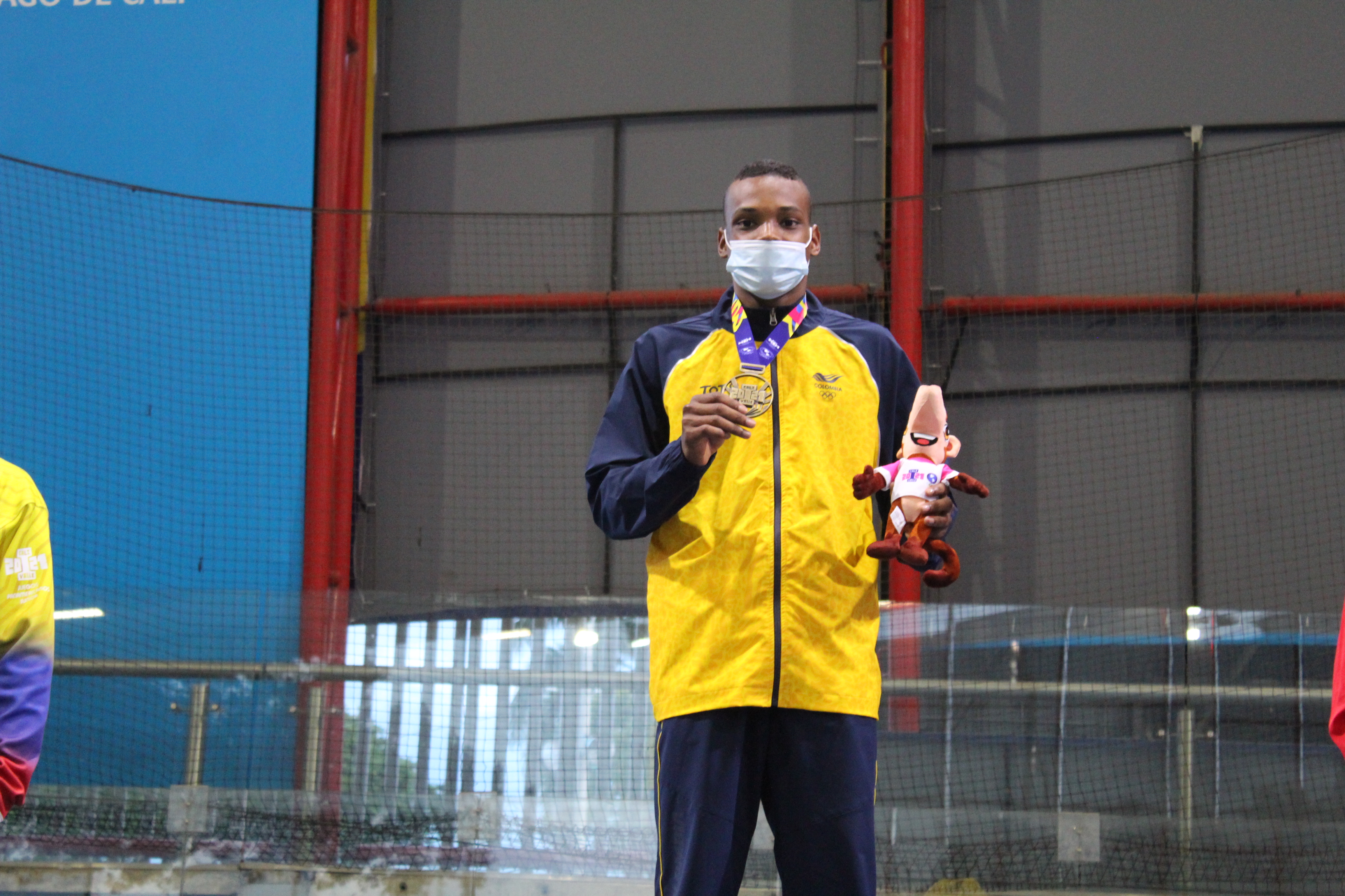 En la fotografía apreciamos al deportista Ronaldo Sánchez Ramírez, mostrando orgulloso la medalla de oro que ganó por participar en la modalidad "Lucha Greco Masculina 60 kg" en los "I Juegos Panamericanos Junior, evento que tuvo lugar en la ciudad de Cali.