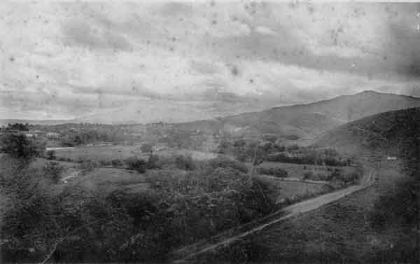 Parte Occidental de Cali, Al fondo se aprecia la Colina de San Antonio. Santiago de Cali, 1886.