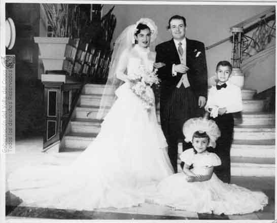 Matrimonio de Blanca Londoño con Gabriel López, sus pajecitos Alfredo y María Teresa Herrera Londoño