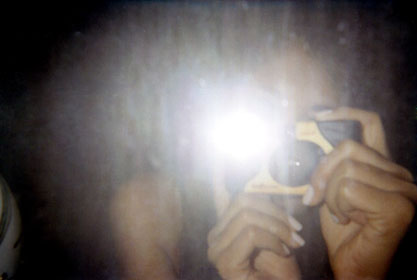 Plano medio alto. Autorretrato con espejo. Interior noche. Utilización de flash.