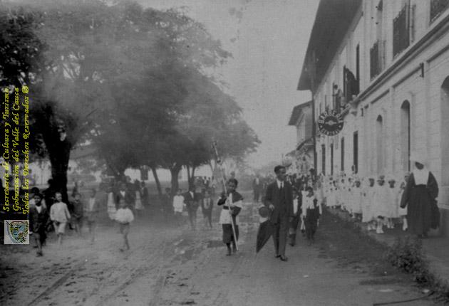 s. n., s. n., s. n., s. n., s. n., s. n. & s. n. (1940). Desfile del 13 de mayo día de la Virgen María, preferido para la celebración de las Primeras Comuniónes, como se observa en la fila de niñas a la derecha, frente a la Escuela Pedro Antonio Molina & 602699. EL CERRITO: Biblioteca Departamental Jorge Garces Borrero.