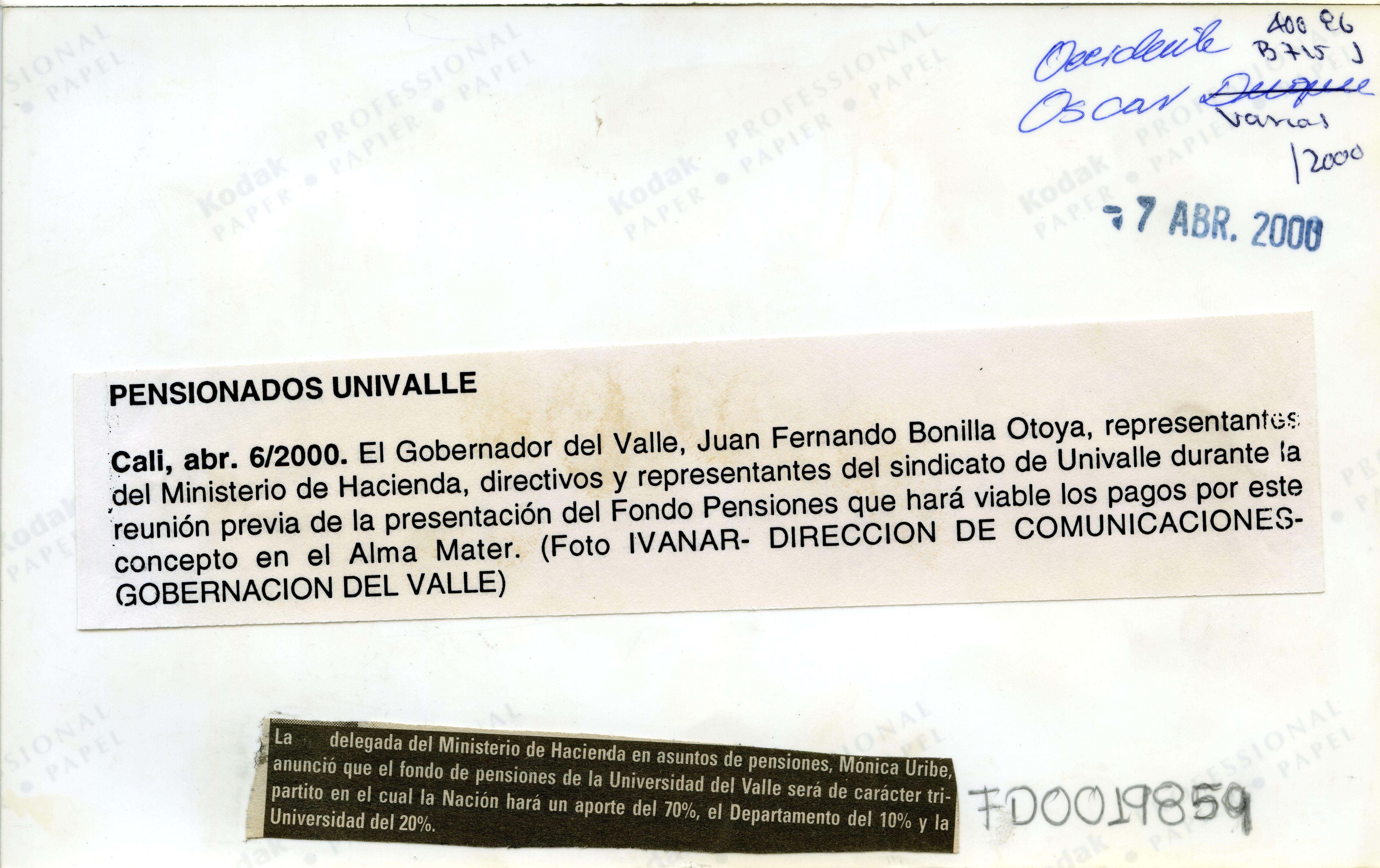 El gobernador del Valle, Juan Fernando Bonilla Otoya, representantes del Ministerio de Hacienda, directivos y representantes del sindicato de Univalle durante la reunión previa de la presentación del Fondo Pensiones que hará viable los pagos por este concepto en el Alma Mater. Foto Ivanar - Dirección de Comunicaciones Gobernación del Valle