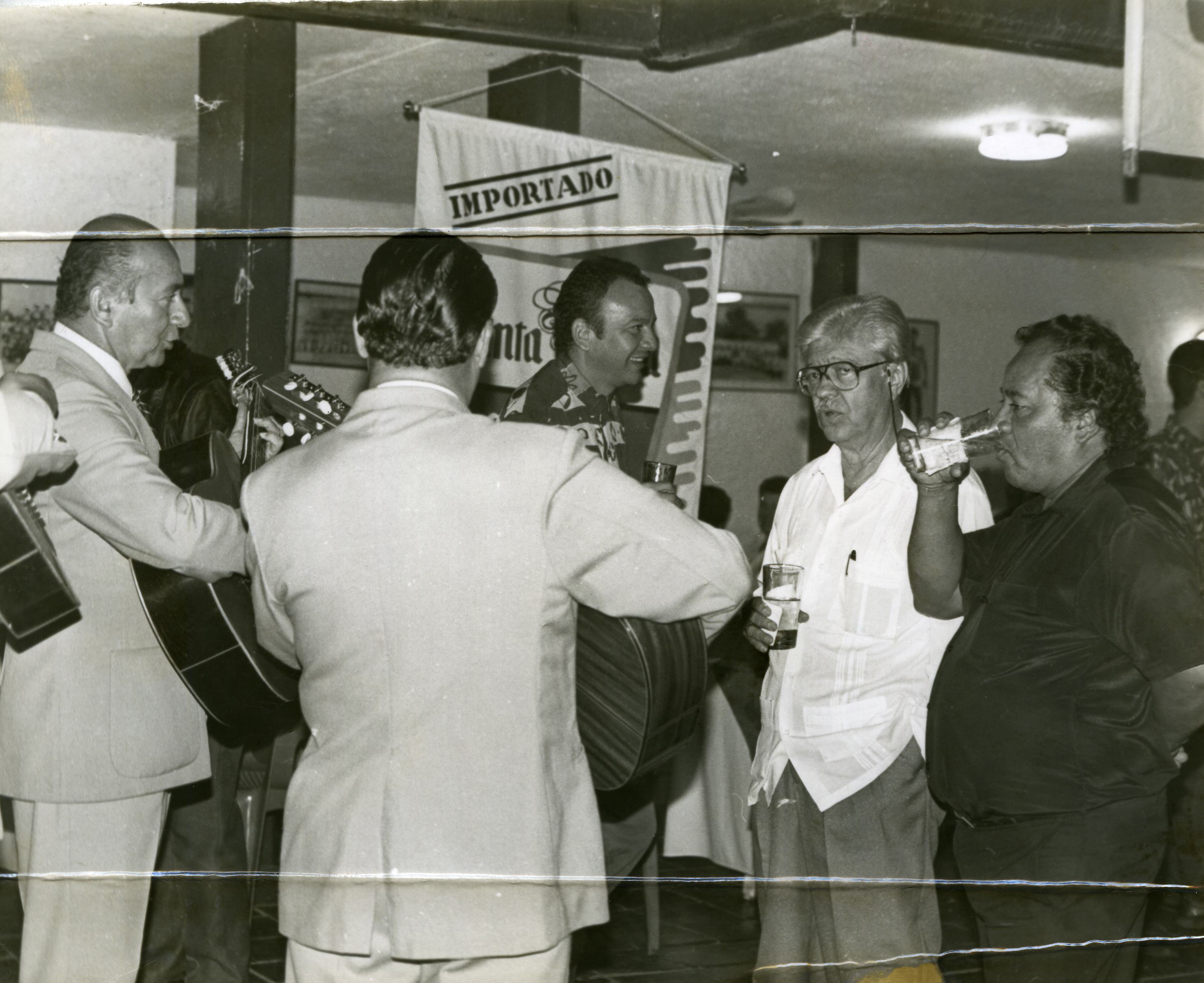 Se observa pedro franco en un establecimiento comercial en una celebración con serenata.