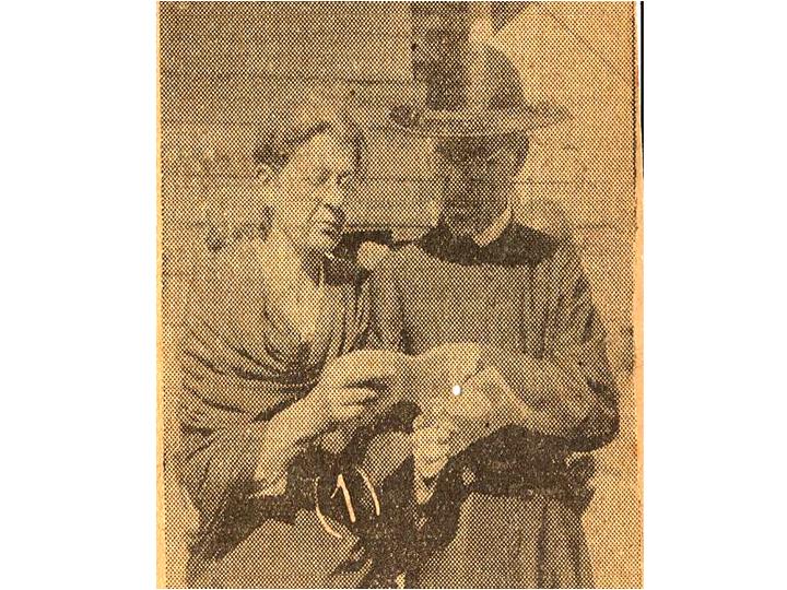 Susana Hurtado con el presbitero Mario Paz Borrero. Santiago de Cali, 1940.