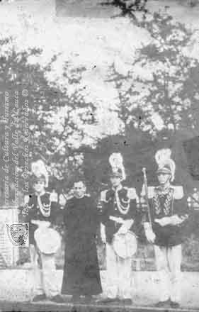 "POPE" DIRECTOR DE BANDA DE GUERRA(Marcial) Y ALGUNOS DE SUS INTEGRANTES. SANTIAGO DE CALI, C. 1935.