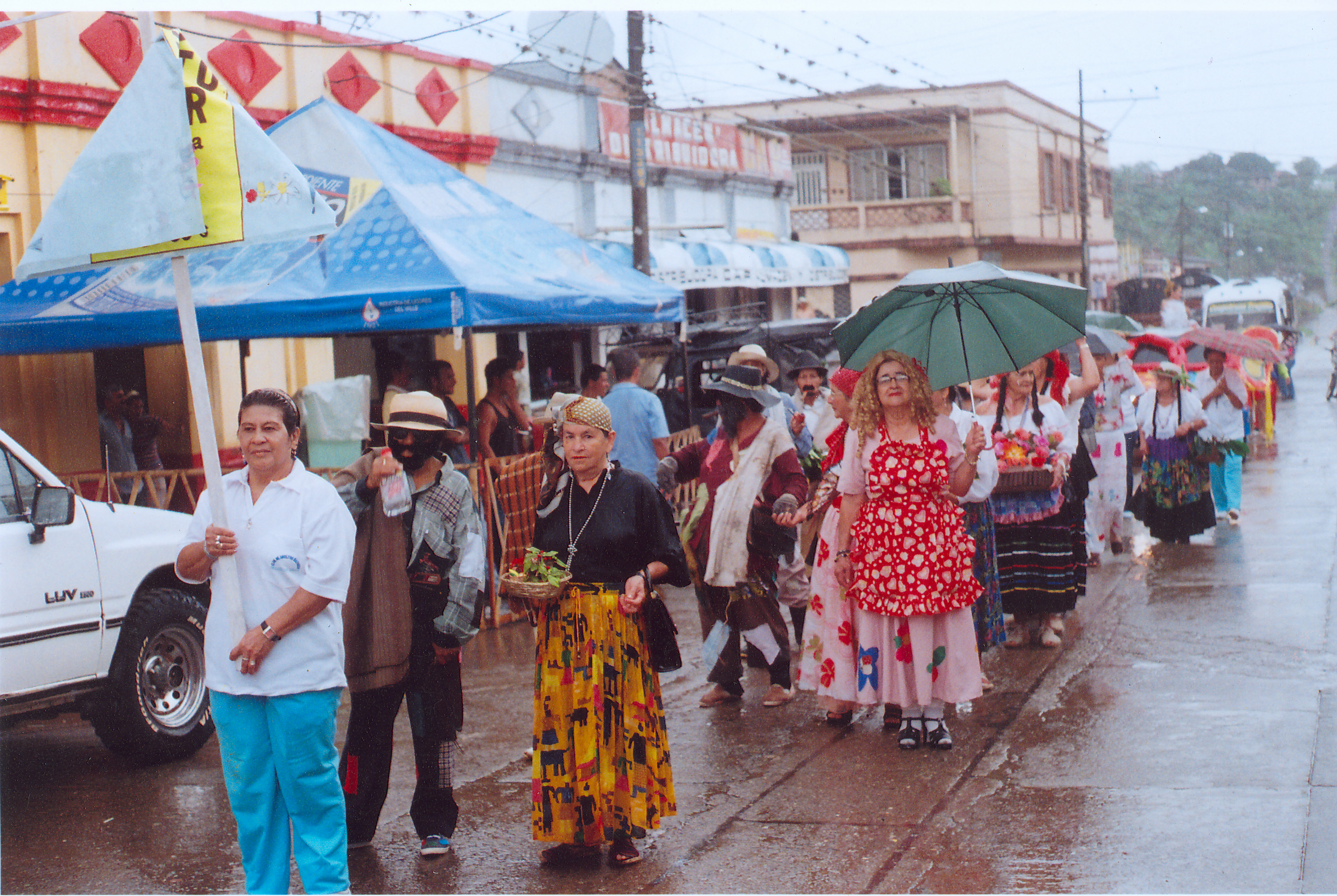 Trujillo, Valle del Cauca. Fundado en 1924, por Leocadio y Rafael Salazar. Nombres: Vernaza. Municipio desde 1930. Economía importante en agricultura, caficultura, ganadería, explotación forestal, entre otros. Atractivo turístico: Iglesias, Charco El Pailón, Monumentos a los Derechos Humanos, Parador El Tablazo. Observamos en la imagen, desfile de comparsas del adulto mayor, alusiva a los años 30