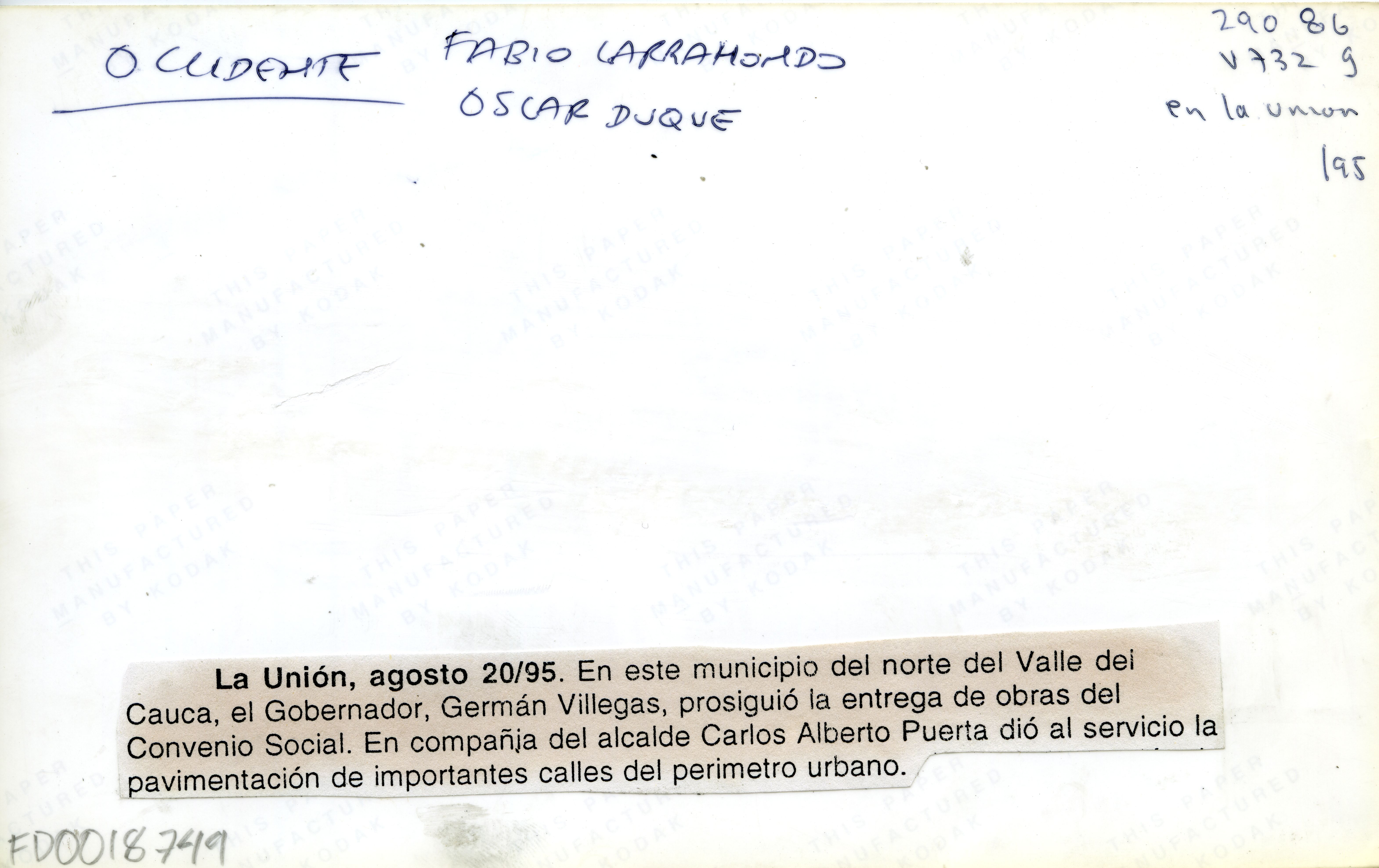 En este municipio del norte del Valle del Cauca, el gobernador Germán Villegas Villegas, Prosiguió la entrega de obras del Convenio Social. E n compañia del alcalde Carlos Alberto Puerta dió al servicio la pavimentación de importantes calles del perimetro urbano