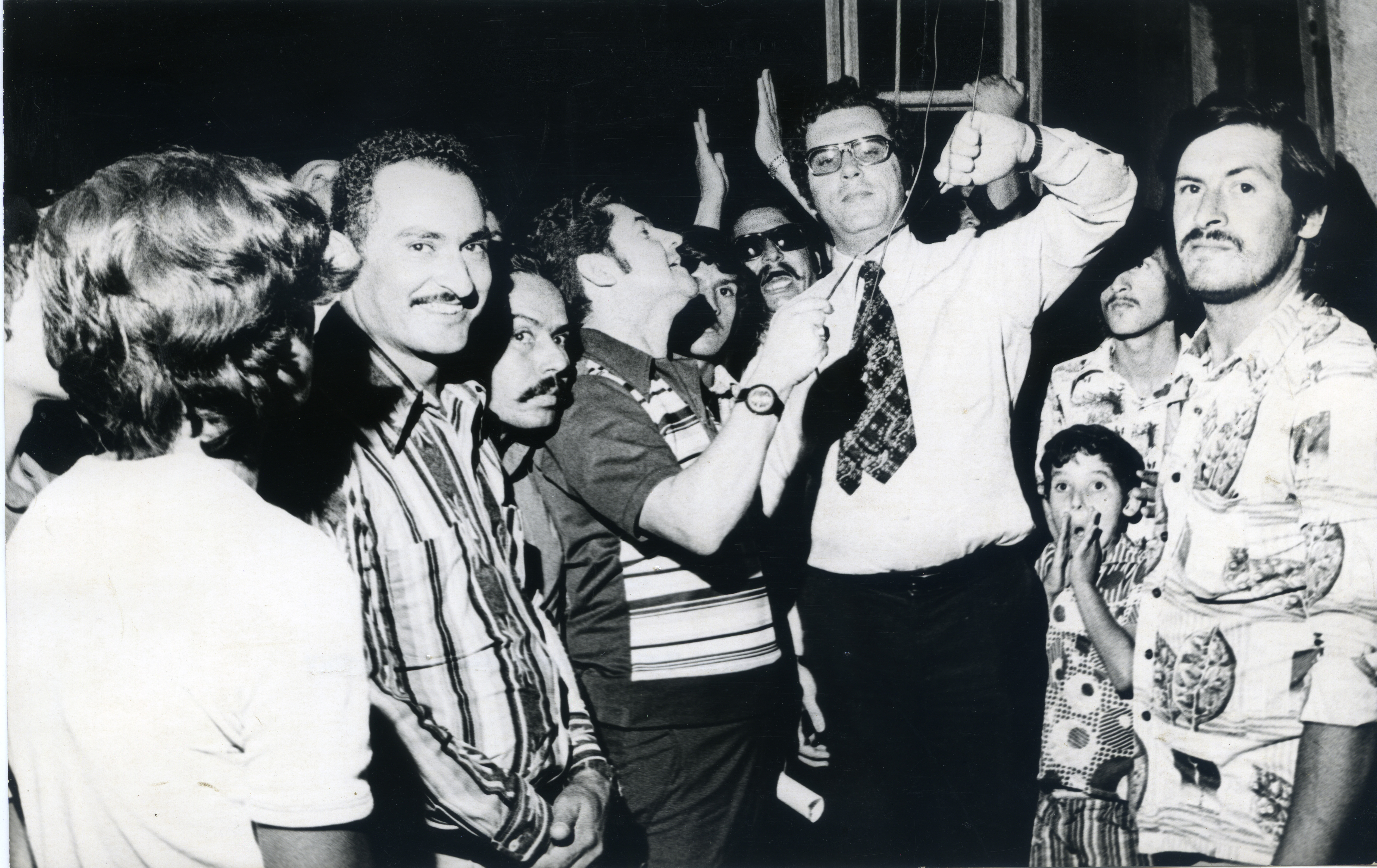 En la fotografía podemos observar a Carlos Holguín Sardi participando junto a los habitantes de Anserma, de la inauguración del alumbrado de ese municipio.