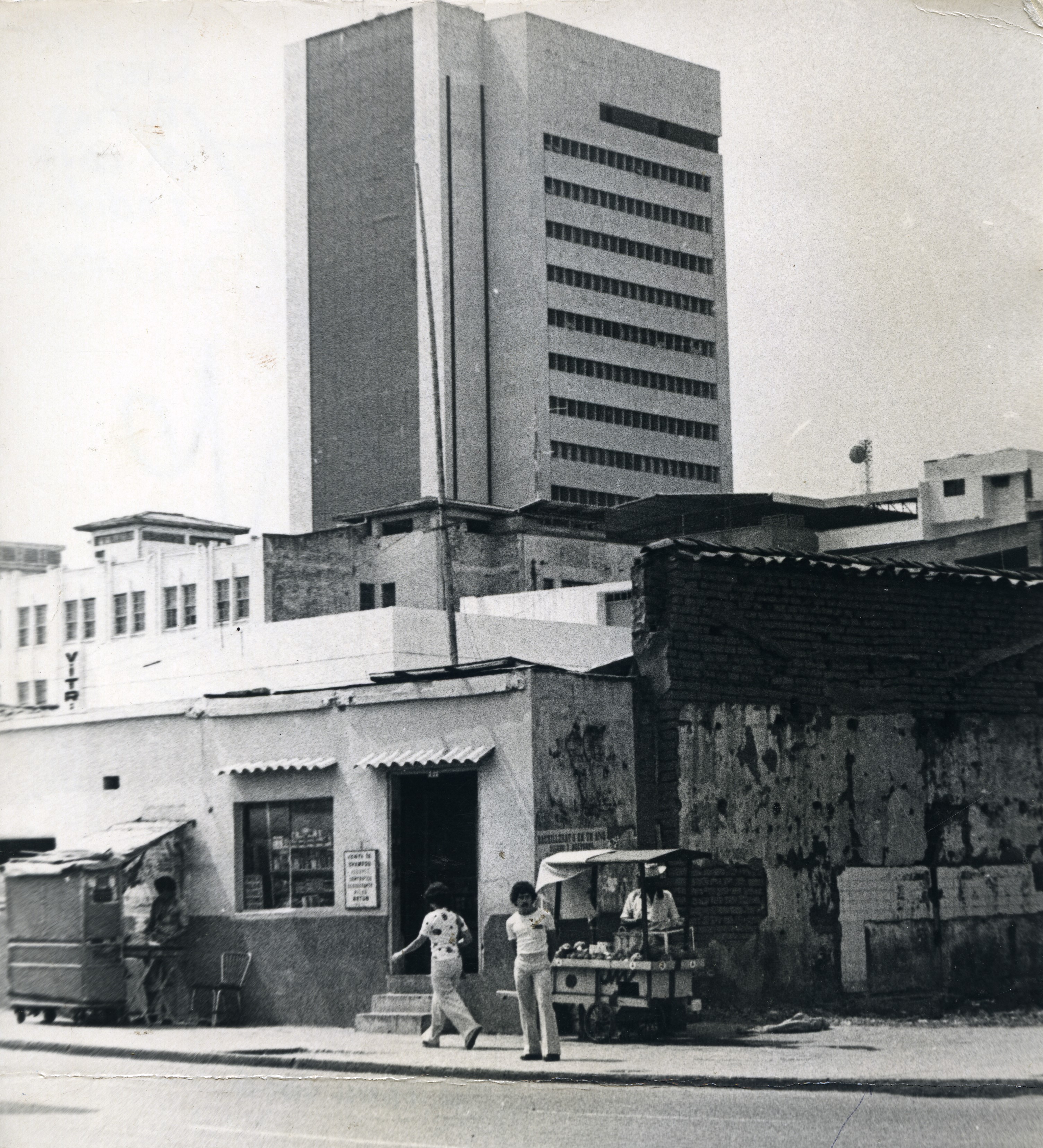 Al reverso de la fotografía dice lo siguiente: "Ruinas de casas y edificios, Abandono y suciedad es lo que se aprecia por estos días en la Sultana del Valle. En esta gráfica captada por el lente de Gerberto Arias, se observa el contraste que muestran algunas muelas".