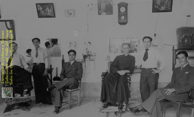 La Barbería llegó a ser uno de los espacios de discusión política más importantes de un pueblo. El barbero fue también un personaje muy respetado y conocido en las culturas populares. Guacarí, C. 1940.