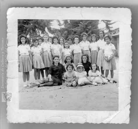 Maestra Ruth María García junto a su grupo de estudiantes de la escuela de Ricaurte. C. 1954.