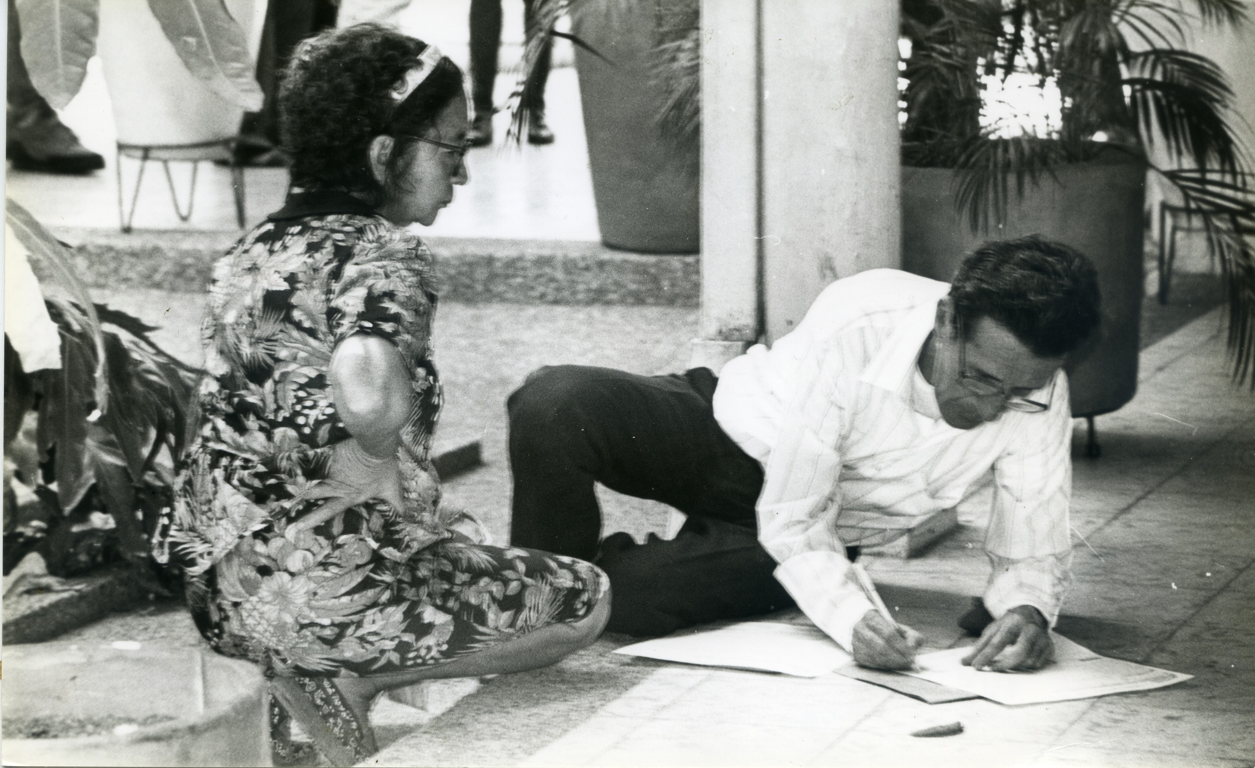 Al reverso de la fotografía se anexa reporte."Hasta en el suelo se llenan los formularios de afiliación del seguro. El gentío que invade las oficinas del centro pide a gritos una caseta de información y la presencia de vigilantes que controlan a los avivatos que se burlan de las colas. En la carrera 68 con Calle 10A también atienden, sin tanta estrechez ni congestión".