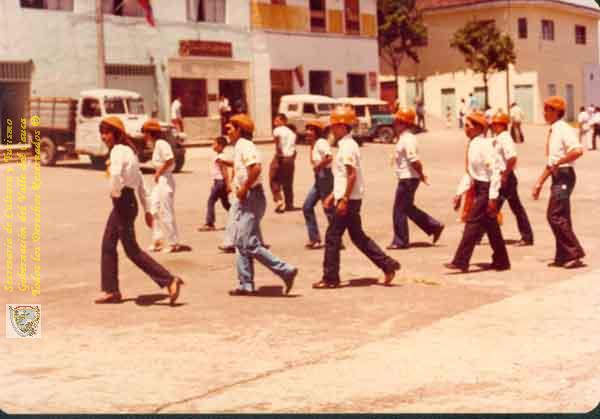 Plaza principal, desfile de 20 de Julio, realizado por la Defensa Civil. Ulloa C. 1982.