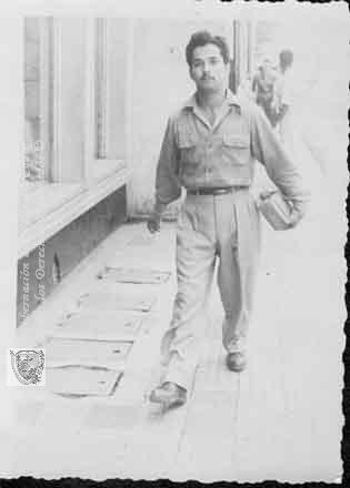 Andres Raga, disfruta de un paseo por las calles de la ciudad. Santiago de Cali, C. 1950