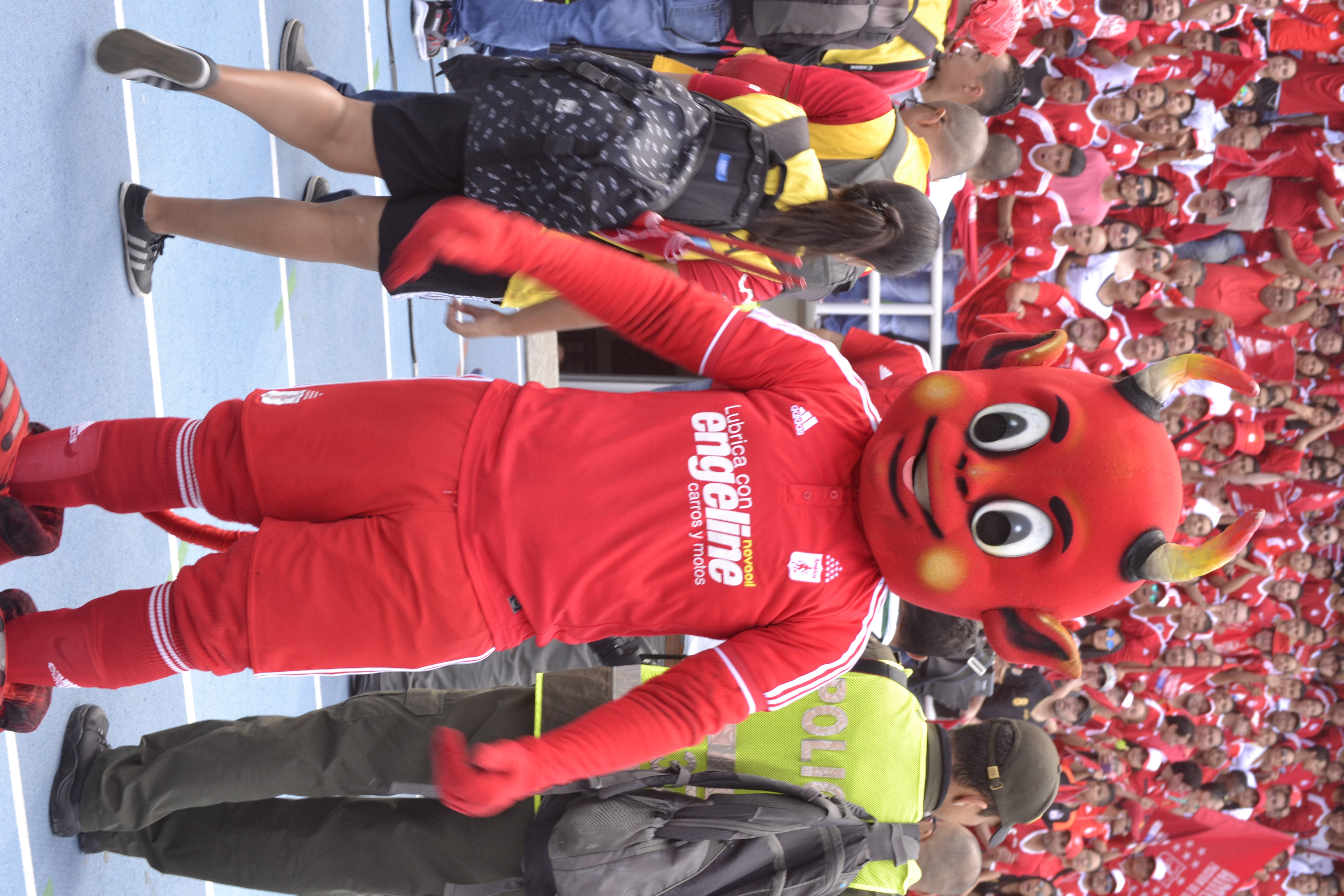 Se aprecia la mascota oficial del equipo América de Cali en la final de ascenso del fútbol profesional Colombiano