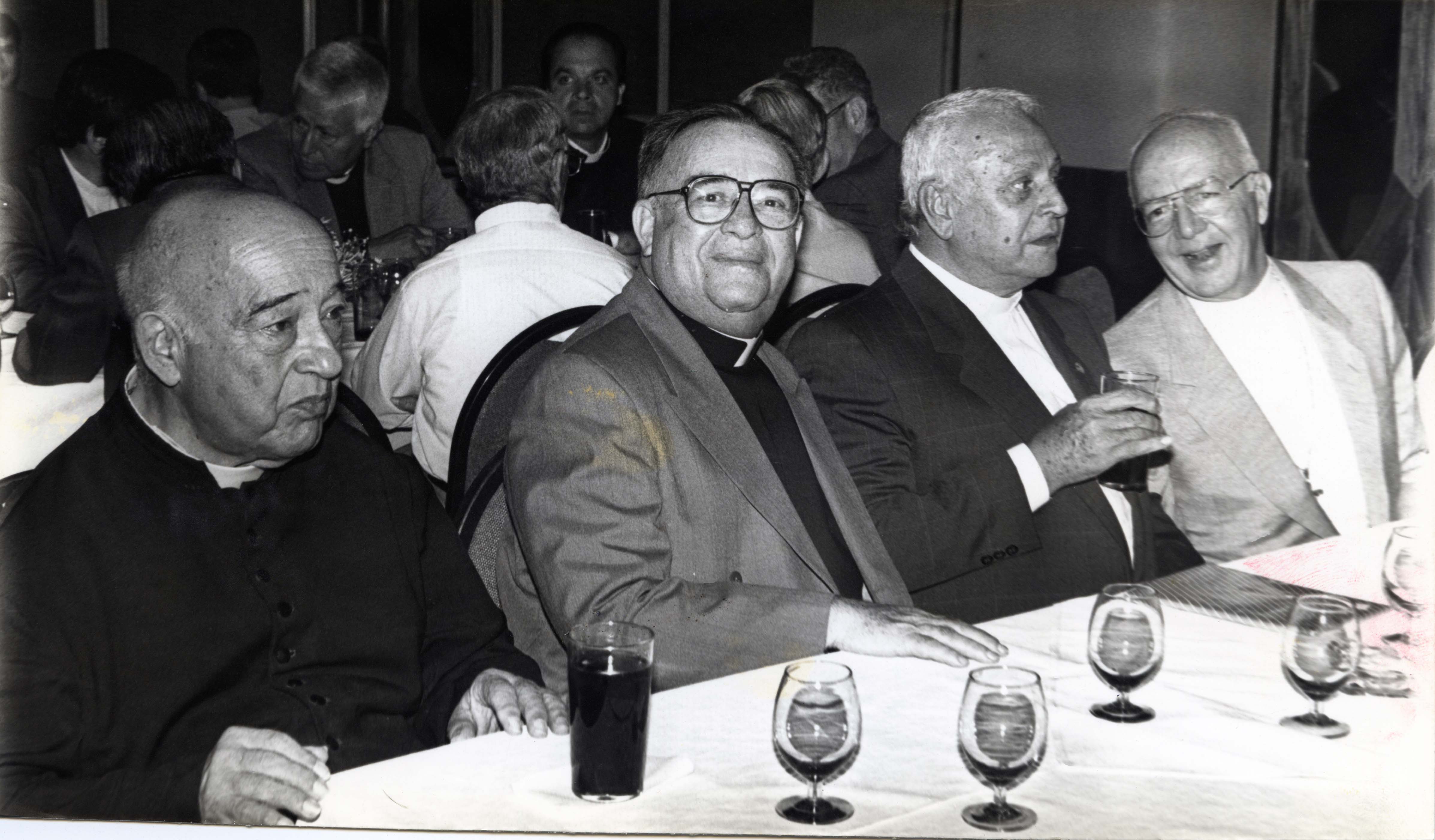Monseñor Mario Navia Vega y el Padre Saúl Aramburo fueron agasajados con el almuerzo en el Club San Fernando al cumplir 45 y 40 años de sacerdocio. Con ellos vemos en la fotografía a Monseñor Anuar llian Botero y a Monseñor Pedro Rubiano Saenz, Arzobispo de Cali. El Archivo del Patrimonio Fotográfico y Fílmico del Valle del Cauca es responsabilidad de la Biblioteca Departamental del Valle Jorge Garcés Borrero, por convenio de cooperación suscrito con la Secretaria del Cultura Departamental, con el fin de aunar esfuerzos para su conservación, preservación y divulgación del Archivo entre la comunidad Vallecaucana, especialmente entre los estudiantes e investigadores que visitan la Biblioteca, propiciando el su uso y consulta permanente. La universidad Icesi es un colaborador en el proceso de difusión, facilitando la tecnología que permite la consulta de las imágenes.