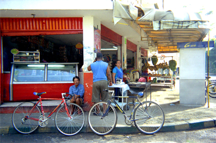 dc.description | Negocio en el barrio Primavera. En primer plano bicicletas parqueadas. Un hombre habla, otro sentado observa la cámara. Al lado una señora se encuentra asando arepas y mira también la cámara. Se destacan trapeadores, escobas, frutas y verduras al fondo en el exterior del local. Plano general. | spa |