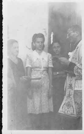 Ceremonia en la que participa Angelica García, Eugenia y Margot Victoria. Cali, 1947.