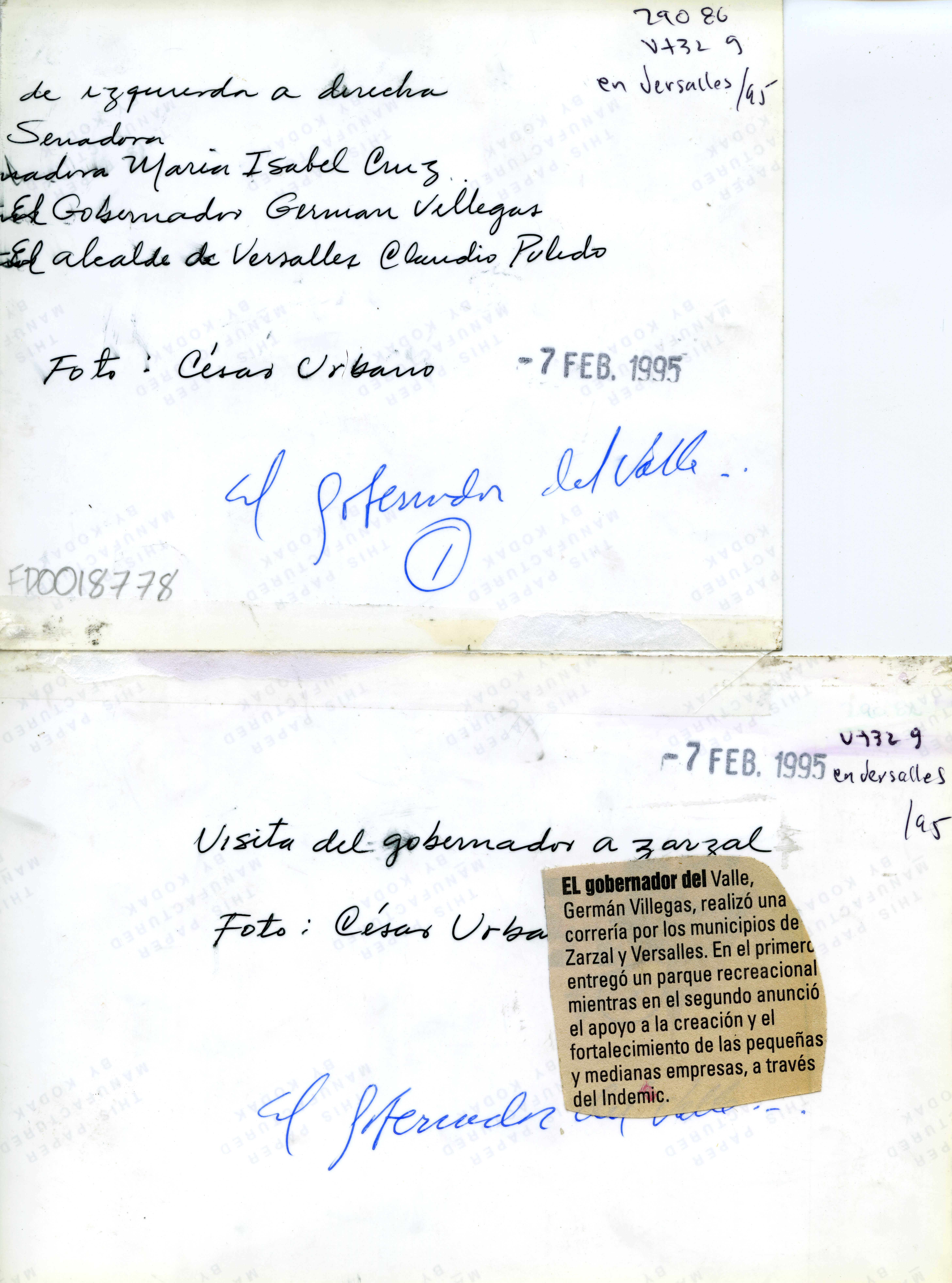 De izquierda a derecha: senadora María Isabel Cruz, el gobernador, Germán Villegas Villegas, el alcalde de Versalles Claudio pulido. El gobernador del Valle Germán Villegas Villegas, realizó una correría por los municipios de Zarzal y Versalles. En el primero entregó un parque recreacional mientras en el segundo anunció el apoyo a la creación y el fortalecimeinto de las pequeñas y medianas empresas, a través del Indemic