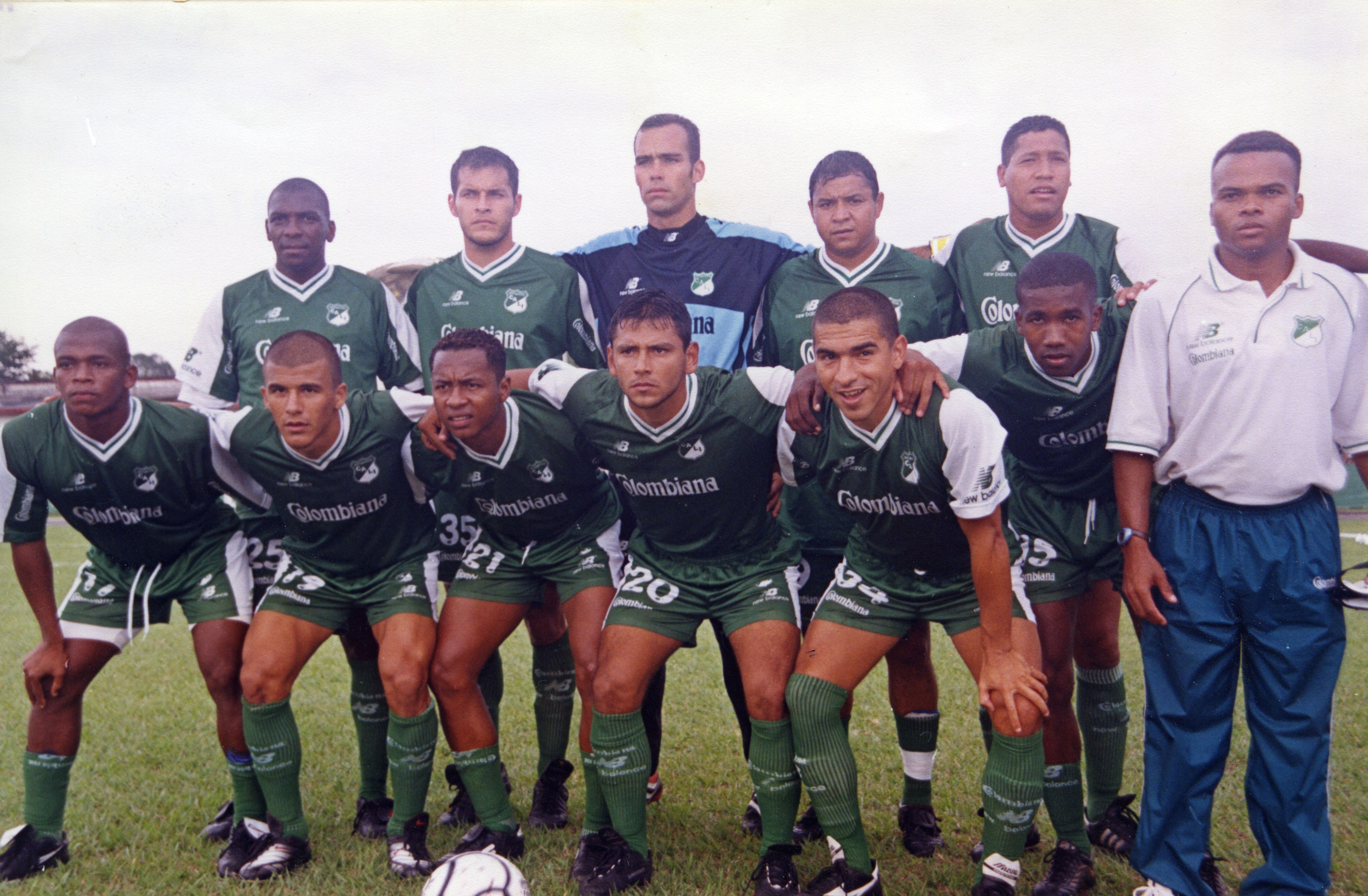 Deportivo Cali, club de fútbol colombiano del Valle del Cauca de la ciudad de Santiago de Cali, Sus inicios se remontan al 23 de noviembre de 1912 y posteriormente ha participado del fútbol profesional desde el año 1948 en donde ha obtenido 10 títulos como campeón del torneo colombiano al 2021, Campeón Copa Colombia 2010, Campeón Superliga de Colombia 2014, ha sido dos veces finalista de la Copa Libertadores de América. Partido entre los equipos de fútbol, Deportivo Cali y Junior, realizado en el Estadio Olímpico Pascual Guerrero. Se aprecia equipo Deportivo Cali posando para la foto