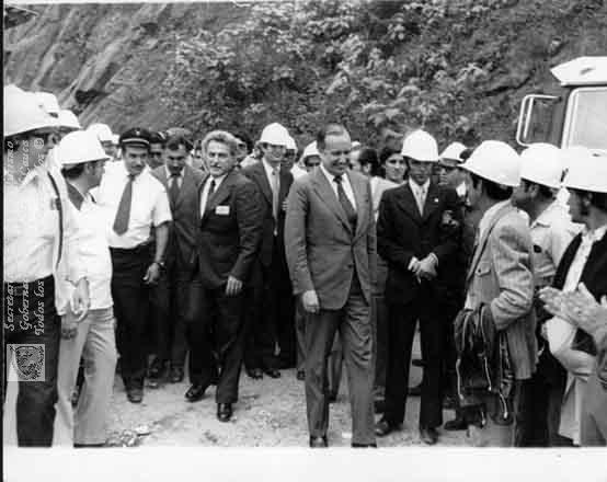 Misael Pastrana Borrero e ingenieros. Buenaventura, Central Hidroeléctrica del Río Anchicayá, C. 1974.