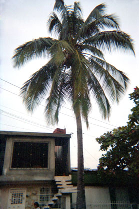 Plano medio. Palmera ocupando todo el campo visual, en contrapunto con casa.