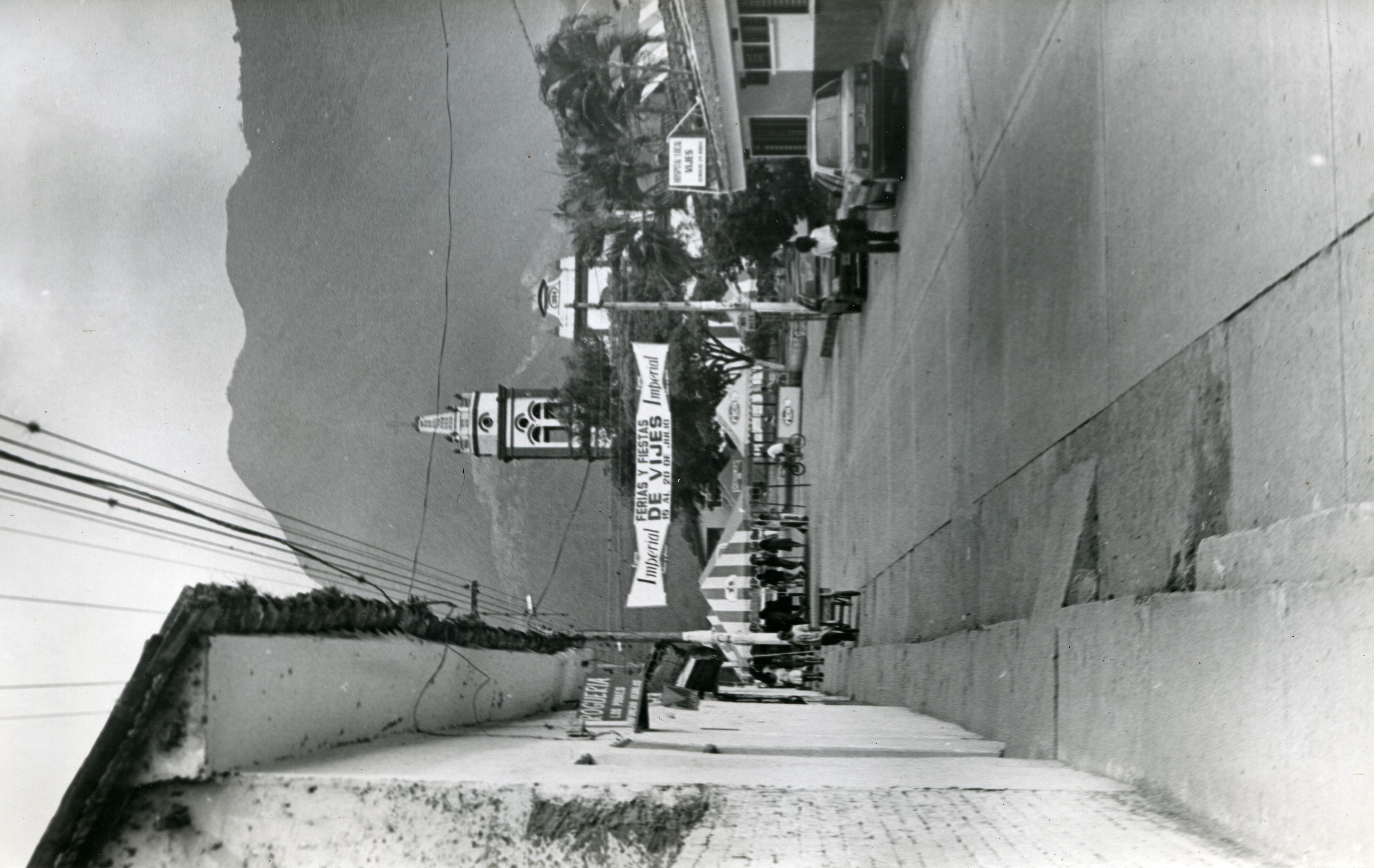 Fotografía de la carrera 3 con calle 6 del municipio de Vijes. Al fondo observamos un aviso publicitario que indicaba, en su momento, las ferias y fiestas de Vijes del 19 al 20 de julio.