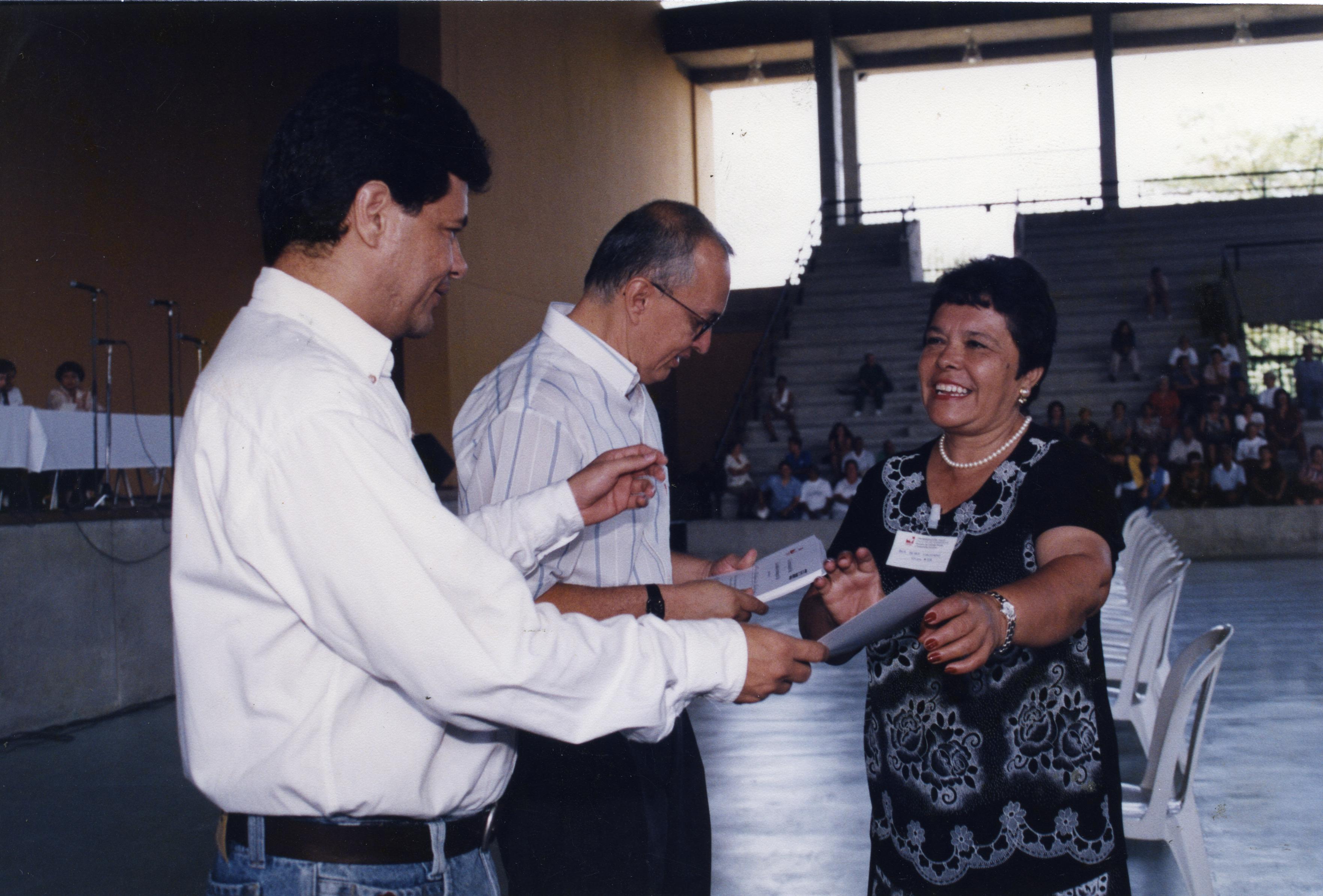 Al reverso de la fotografía se anexa el pie de foto del periódico: como un triunfo personal y comunitario se puede catalogar el esfuerzo realizado por la secretaría de Bienestar Social y Gestión Comunitaria y de los mismos abuelos quienes ya están recibiendo los certificados que los acredita como universitarios