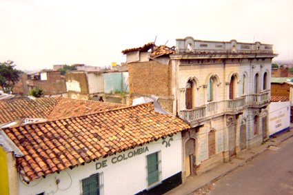 | dc.description | Plano Medio. En la imagen se observa la fachada de una casa de dos plantas abandonada con sus puertas y ventanas clausuradas con ladrillo, contrasta con una vivienda de de color blanco, zócalo oscuro y fachada colonial. | spa |