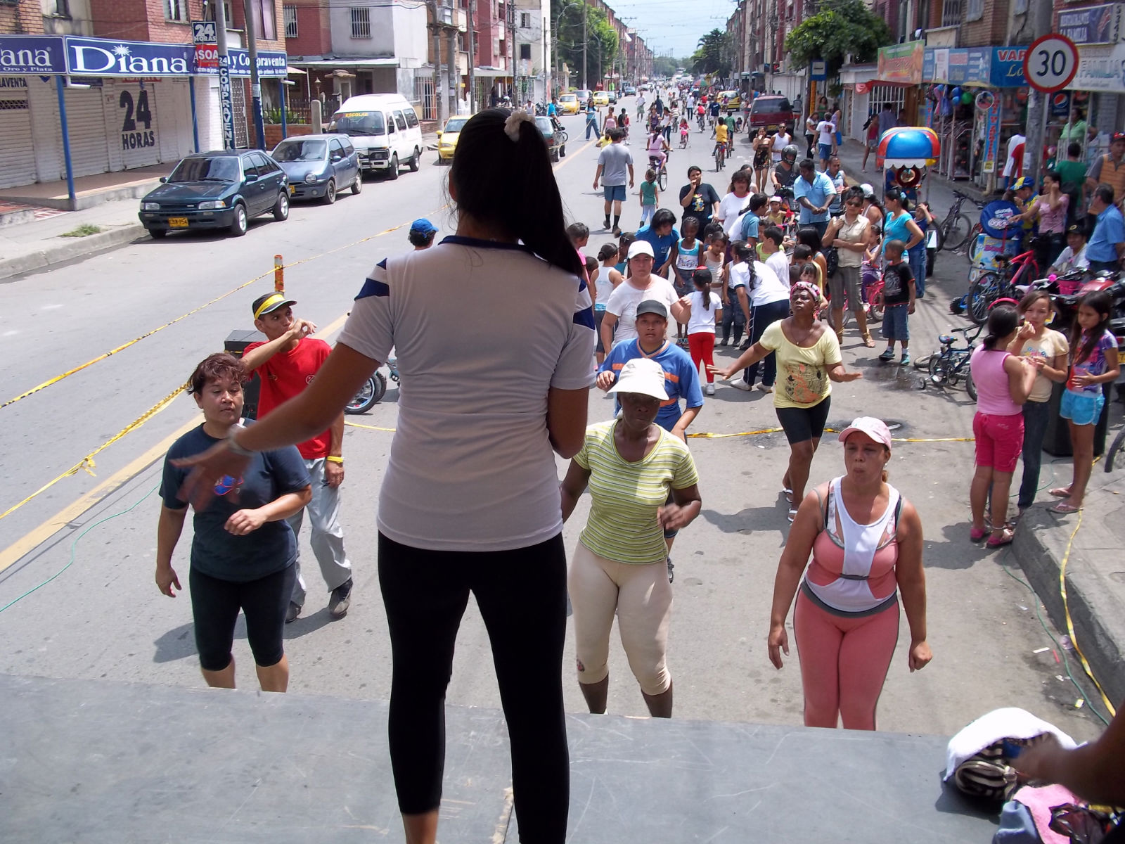 La CicloVida de Cali, es un programa de la Alcaldía de Santiago de Cali, liderado por la Secretaría del Deporte y Recreación, actividad incluyente para toda la ciudadanía, donde se cierran temporalmente las calles para los vehículos y se abren para los habitantes de la ciudad, todos los domingos de 8:00 am a 1:00 pm para que disfruten de un espacio seguro y gratuito para que en familia o amigos disfruten de la actividad física, recreación, deporte y cultura. Se aprecia en la imagen, instructora en clase de calentamiento dirigida a los asistentes. Observamos como siempre buena asistencia de niños, jóvenes y adultos