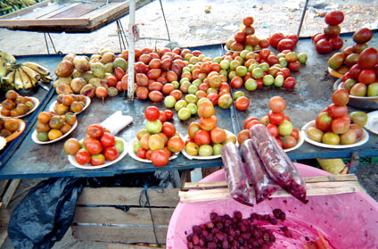 | dc.description | Primer plano de frutos, sobre superficie rectangular. Vivacidad de colores. Formas circulares dominando escena. Exterior día. | spa |