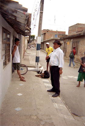 Mejía, J. C. (2005). Se observan hombres en exterior de una residencia. Santiago de Cali: Biblioteca Departamental Jorge Garces Borrero.