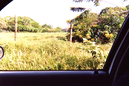 Toma realizada desde el interior de un vehículo, donde se puede apreciar en el exterior, un terreno con abundante vegetación