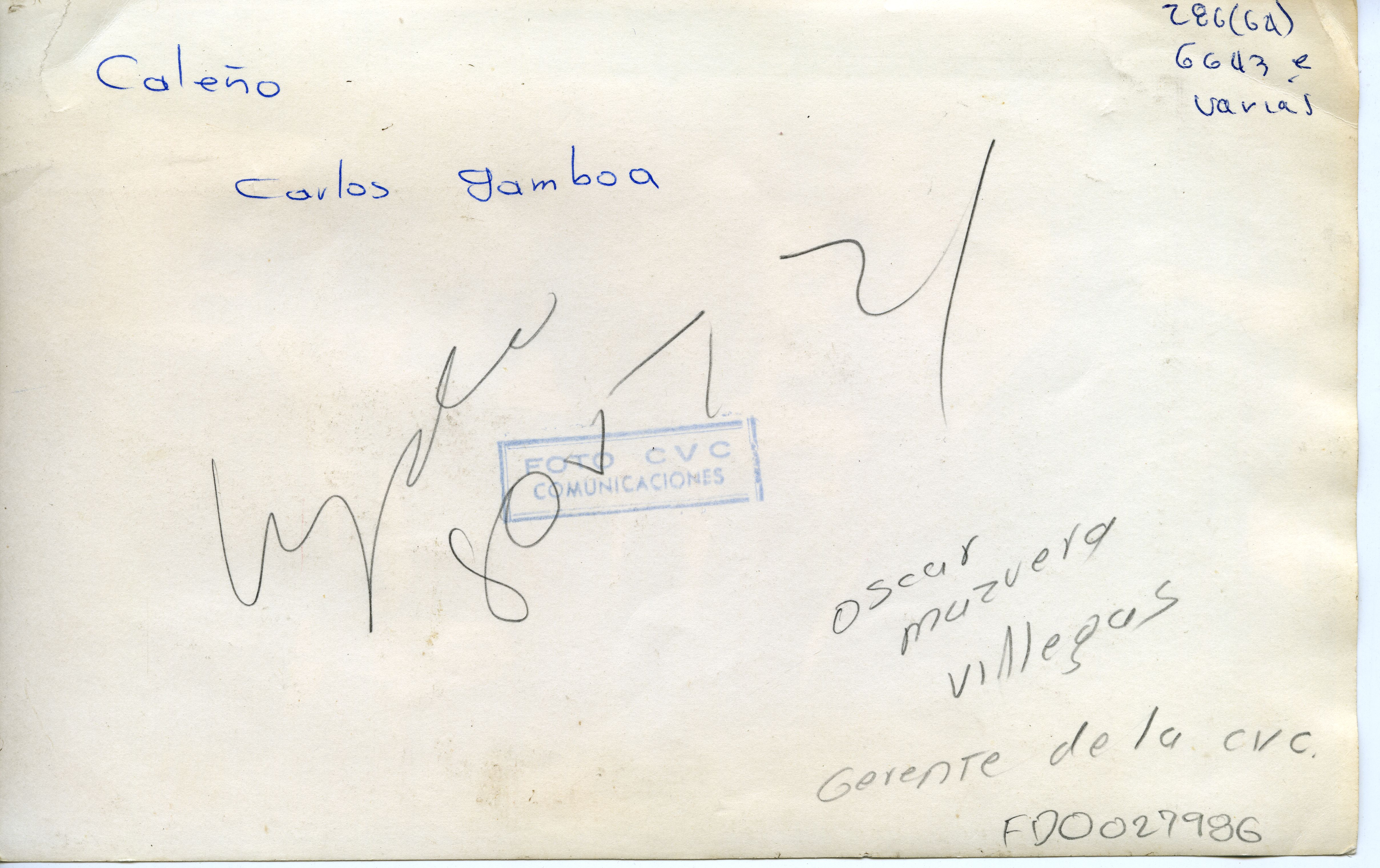 En la fotografía es posible detallar al Gobernador Ernesto González Caicedo junto con el gerente de la C.V.C Oscar Mazuera Villegas y el Caleño Carlos Gamboa
