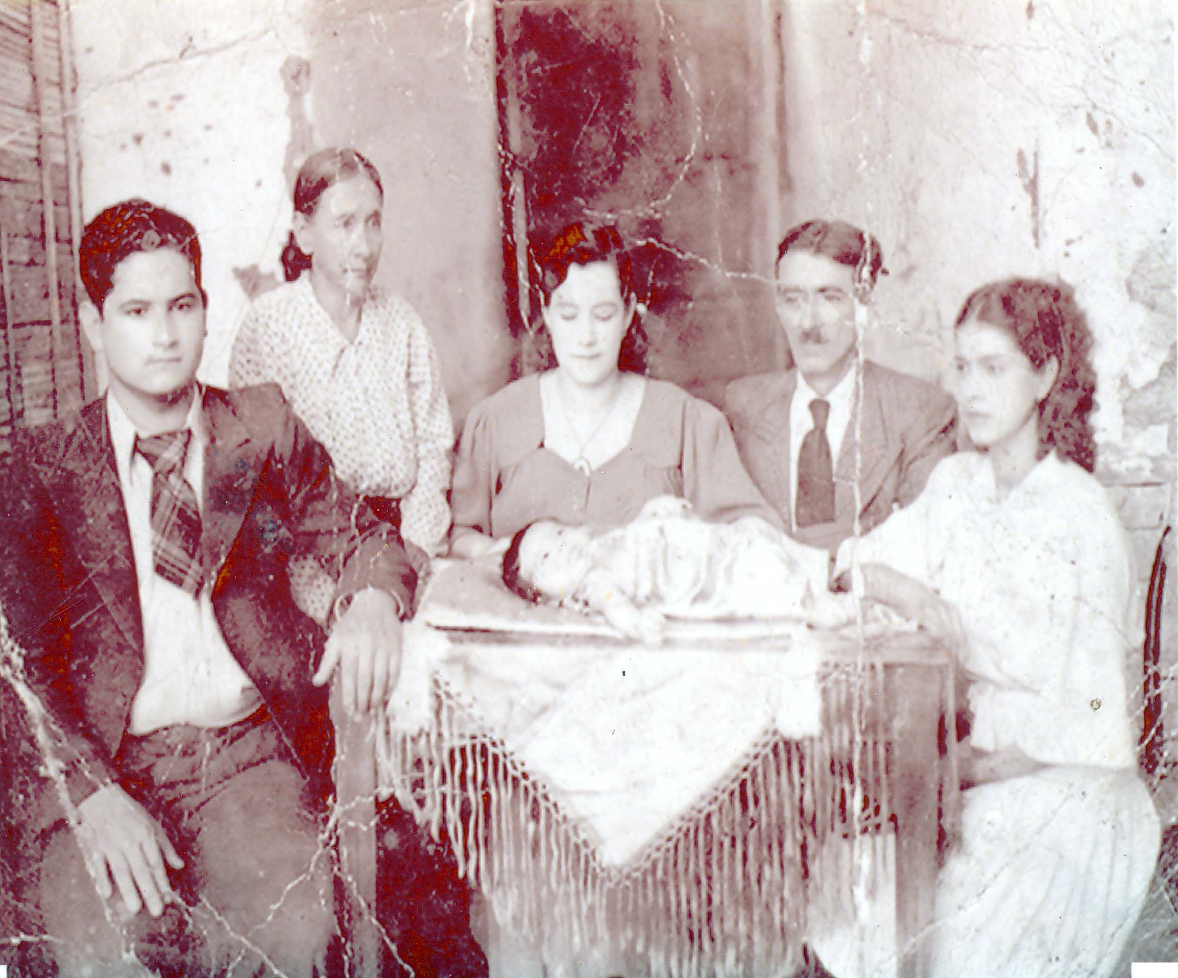 Caicedonia, Valle del Cauca. Fundado en 1905, por Daniel Gutiérrez, Jorge Moreno, Zenón Baena. Municipio desde 1923. Economía importante en agricultura, caficultura, ganadería, comercio, entre otros. Atractivo turístico: cerro de cubides, club de tiro, caza y pesca, río barragán, paraje natural, lagos. Observamos en la imagen, Casa de Elvira de Herrera. Se aprecia la familia Herrera con un bebé de pocos meses