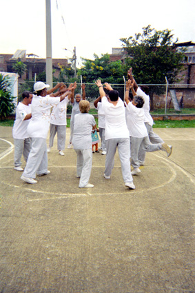 | dc.description | Imagen tomada en exterior, donde se puede apreciar un grupo de mujeres de edad adulta, haciendo ejercicio en una cancha de baloncesto. Al fondo varios árboles y la fachada de algunas viviendas. Plano medio. | spa |