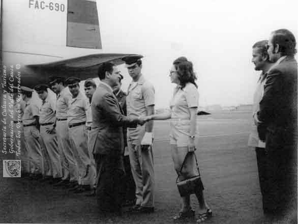 En acto de recibimiento realizado en la pista de la Escuela Militar de Aviación. Santiago de Cali, 1973.