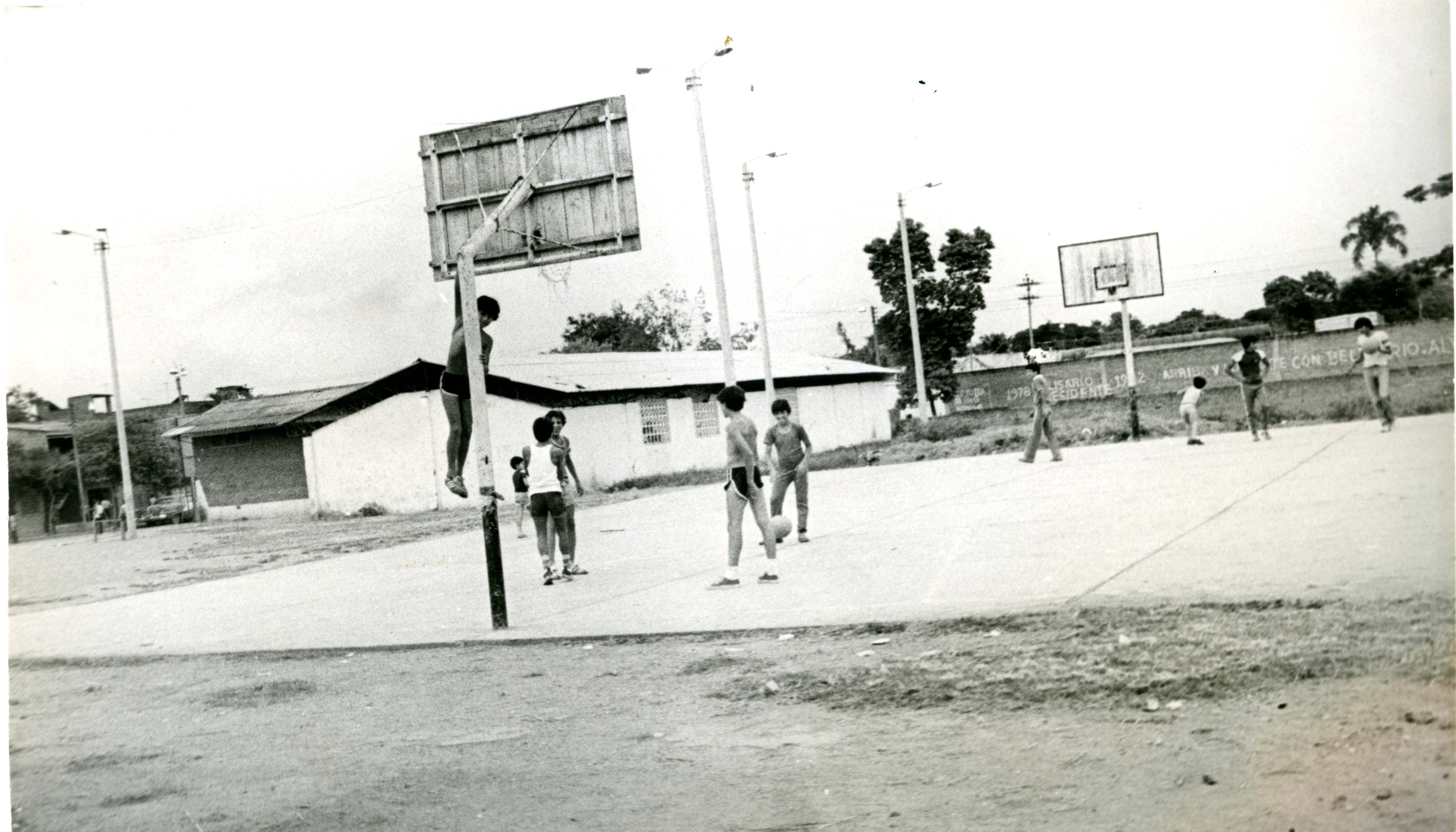 Observamos jóvenes jugando en la cancha del barrio Calima