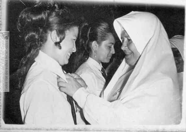 s. n. & s. n. (1970). Evangelina Marmolejo y la Directora de la Normal de Señortias durante la ceremonia de graduación de bachillerato & 601615. LA VICTORIA: Biblioteca Departamental Jorge Garces Borrero.