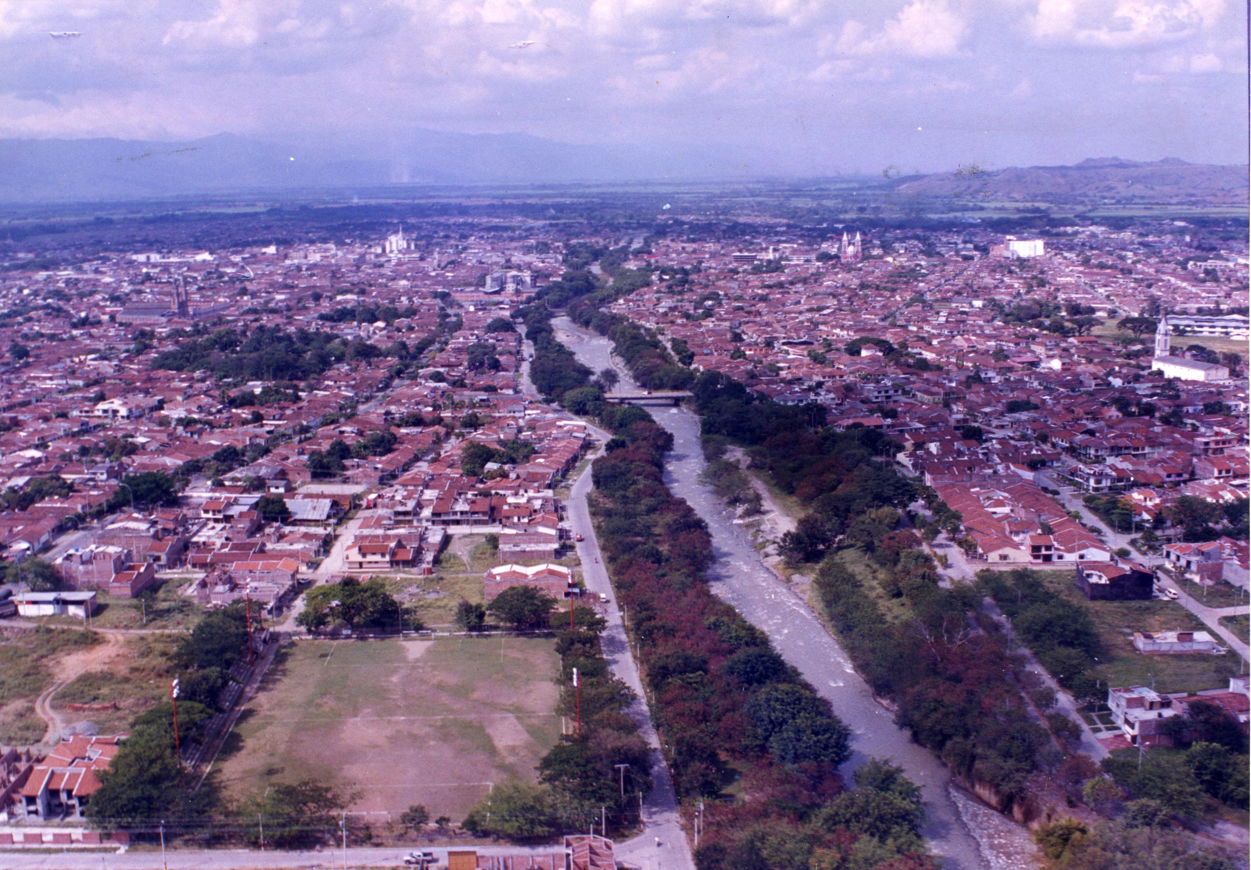 En la gráfica se aprecia panorámica del municipio de Tuluá, Valle del Cauca. Se aprecia el río Tuluá y la naturaleza en la ciudad