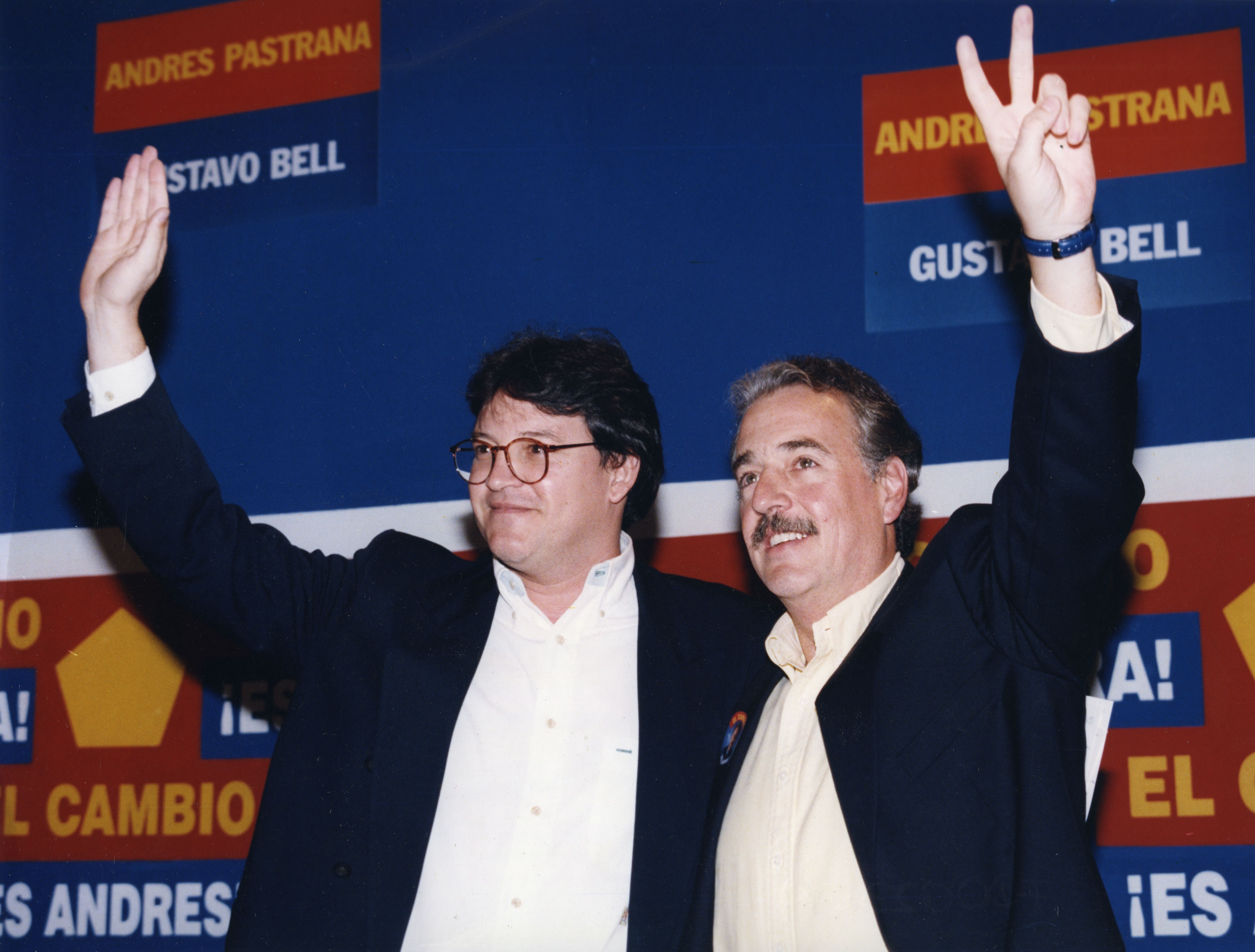 En la fotografía podemos observar al candidato a la presidencia, el señor Andrés Pastrana junto al candidato a la vicepresidencia Gustavo Bell Lemus.