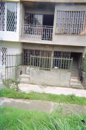Hurtado Ocoró, D. (2005). Plano medio de fachada de casa de dos plantas en cemento totalmente enrejada. Santiago de Cali: Biblioteca Departamental Jorge Garces Borrero.